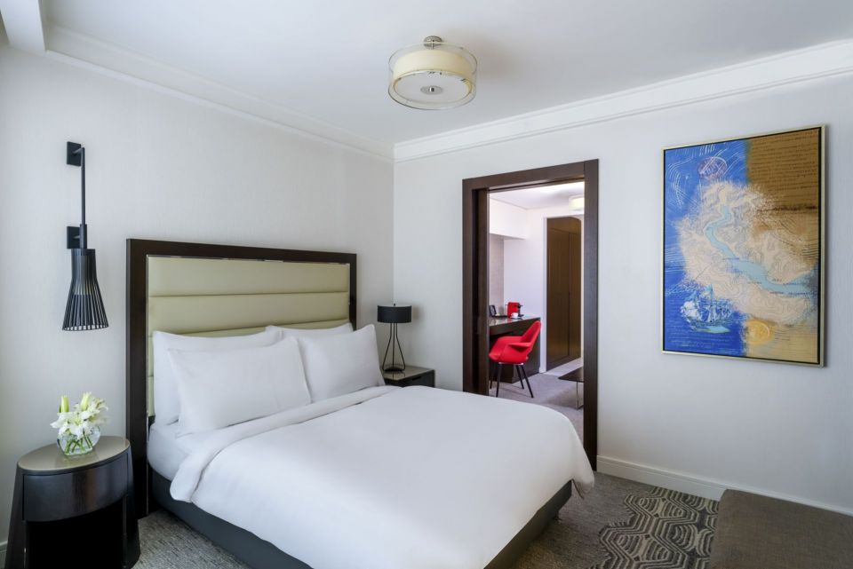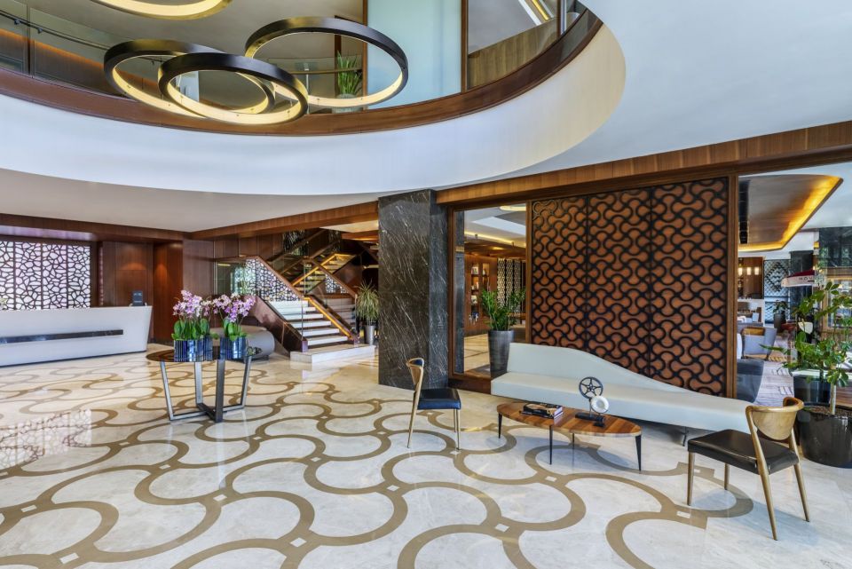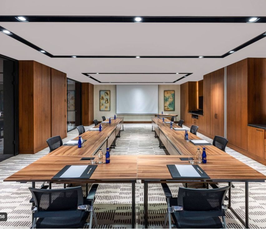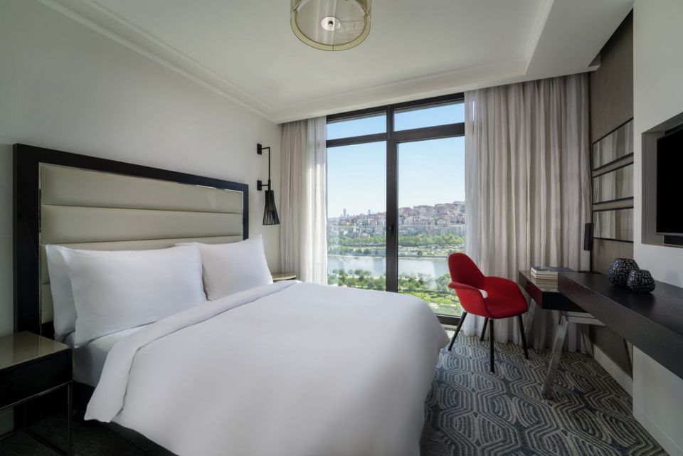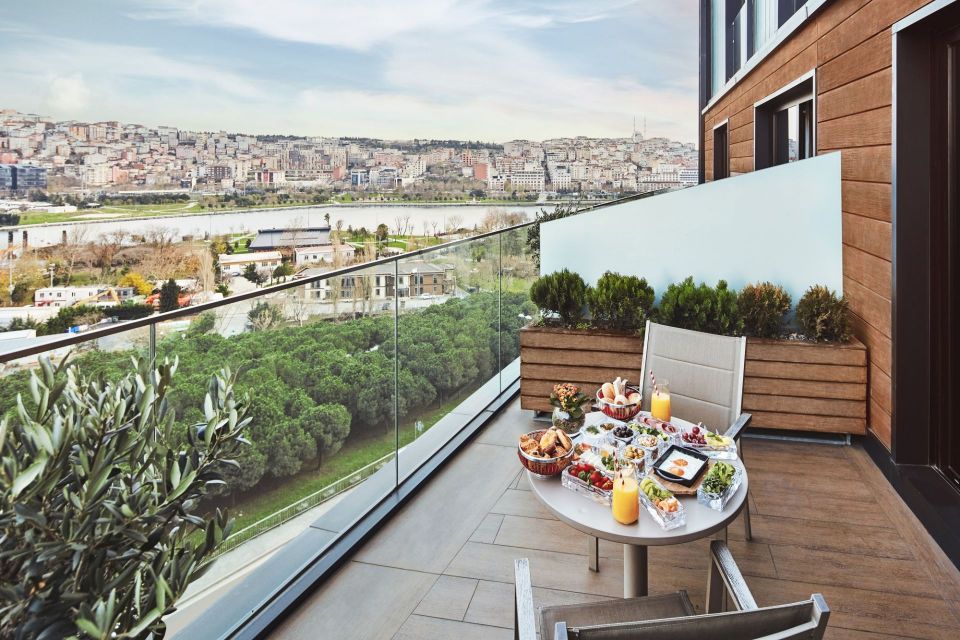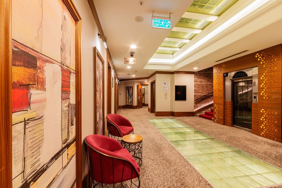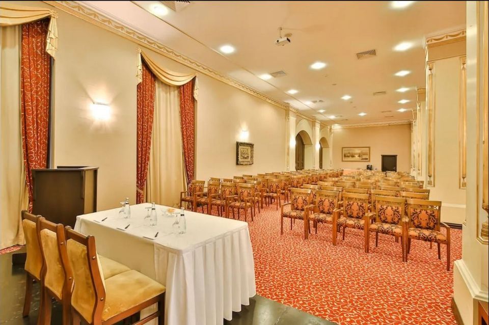300 м от главного здания, первая линия (предусмотрен шатл сервис)